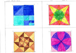 ![]() Tav. 1 Costruzione del quadrato - Luca delle Rose - classe IIC | ![]() Tavola studio quadrato - motivi simmetrici |
